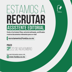 A Editorial Fundza, vocacionada na edição e venda de livros, pretende recrutar um assistente editorial (f/m) para apoiar e cuidar das rotinas do Departamento Editorial. Igualmente,